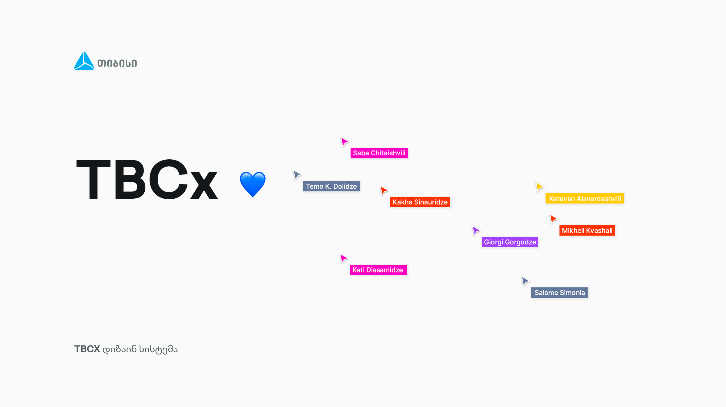 TBCx ის მიზანია კომპანიის ციფრულ პროდუქტებში შევქმნათ საუკეთესო, თანმიმდევრული მომხმარებლის გამოცდილება და ინტერფეისი, TBCx დიზაინ სისტემის გუნდი მუშაობს დიზაინის, ბრენდის, მარკეტინგისა და დეველოპერების გუნდებთან ერთად, რათა ერთიანად დაინერგოს დიზაინ სისტემის პრინციპები.